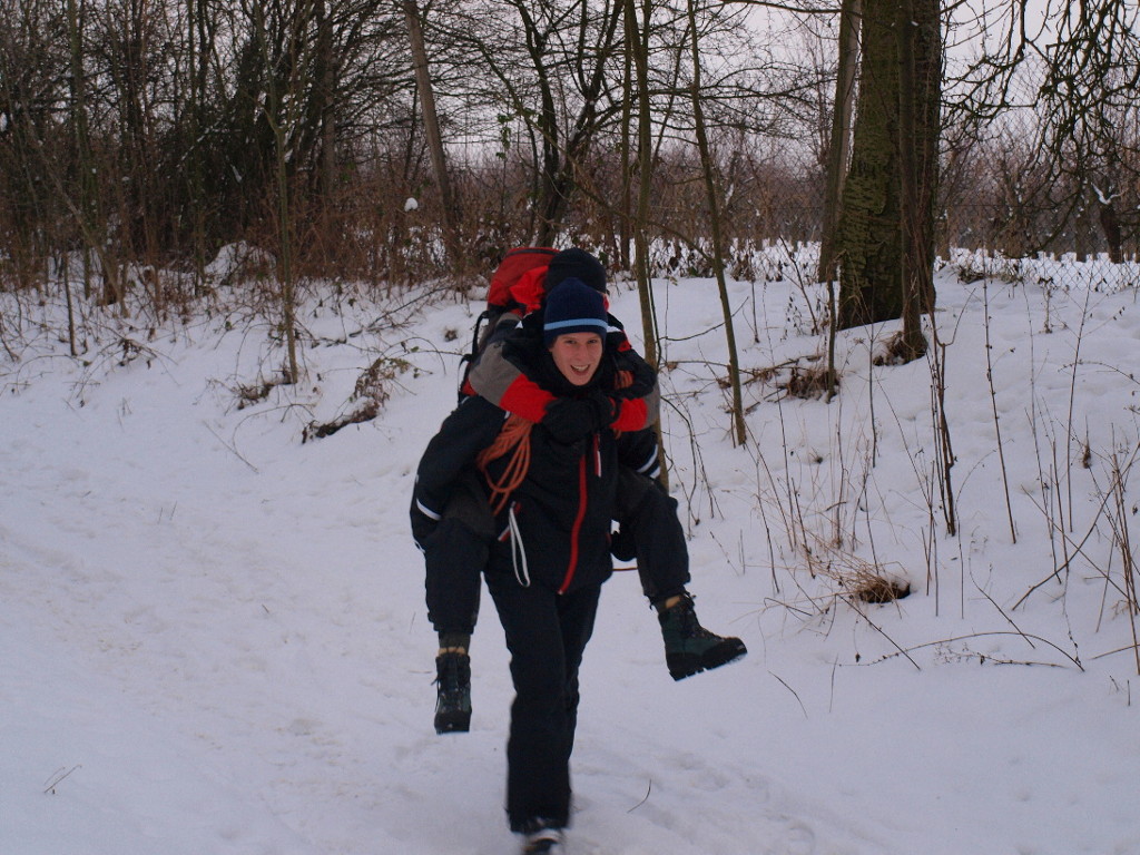 V průběhu večera nám přišlo trochu divné, že někteří organizátoři víkendu chodí stále někam ven a naše podezření se v zápětí potvrdilo. Do zimy oblečený Červík přiběhl a začal po celé chalupě pokřikovat, že venku jsou dva ranění a že potřebují rychle naši pomoc. Na poli za chalupou leželi dva nám dobře známí figuranti a velmi věrohodně předstírali předem dohodnutá zranění. Raněným jsme poskytli první ne zrovna moc odbornou pomoc a transportovali je na chalupu. Na tomto cvičení jsme se názorně přesvědčili, jak je důležité mít mezi sebou někoho, kdo celé akci velí. Také myslím, že nejednoho z nás reakce nás samých v nasimulované tísňové situaci docela překvapila. Celou záchranou akci jsme si následně rozebrali a podělili se s ostatními o své pocity.